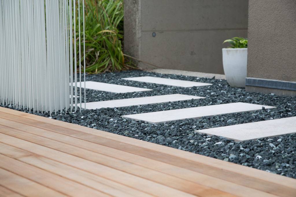 Trittplatten, also einzelne Naturstein- und Betonplatten, die lose mit gewissen Abständen zueinander verlegt werden, sind eine einfache, aber dekorative Art, um kurze, weniger intensive genutzte Strecken im Garten zu überbrücken. Die Steinplatten werden dabei oft für besseren Halt in einem Sand- oder Mörtelbett verlegt. Die Zwischenräume werden anschließend mit Schotter, Rindenmulch oder Erde aufgefüllt. Diese Art von Wegen ist leicht zu pflegen und zeitlos schön.